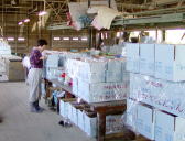 箱詰め前の蓮根を見つめて小村氏は新しい料理を考えているのかも